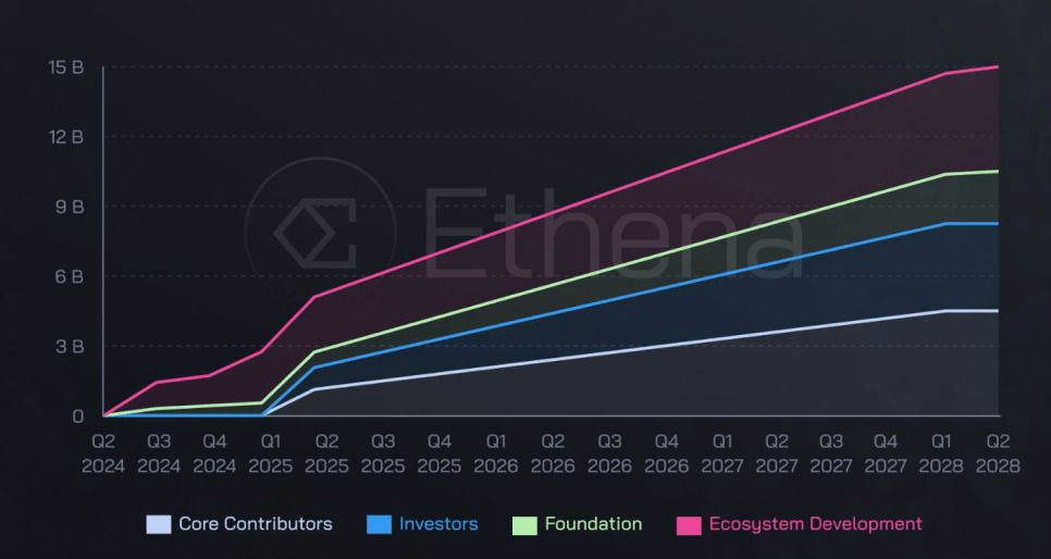 ENA 的解锁计划将从 2024 年第二季度开始分阶段实施。解锁计划将在 2025 年第二季显着加速,并于 2028 年第二季结束。以下是 150 亿 ENA 总供应量的解锁计划。