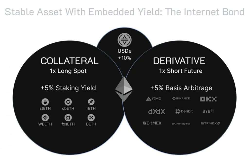 此外,与 USDT 或 USDC 等以美国国债等现钱资产为支撑的竞争稳定币不同,USDe 通过“基差交易”策略获利,该策略利用现货和期货市场之间的价格差异,以比特币和以太坊等主要虚拟资产作为抵押品,为持有者提供 5.5% 的年回报率。