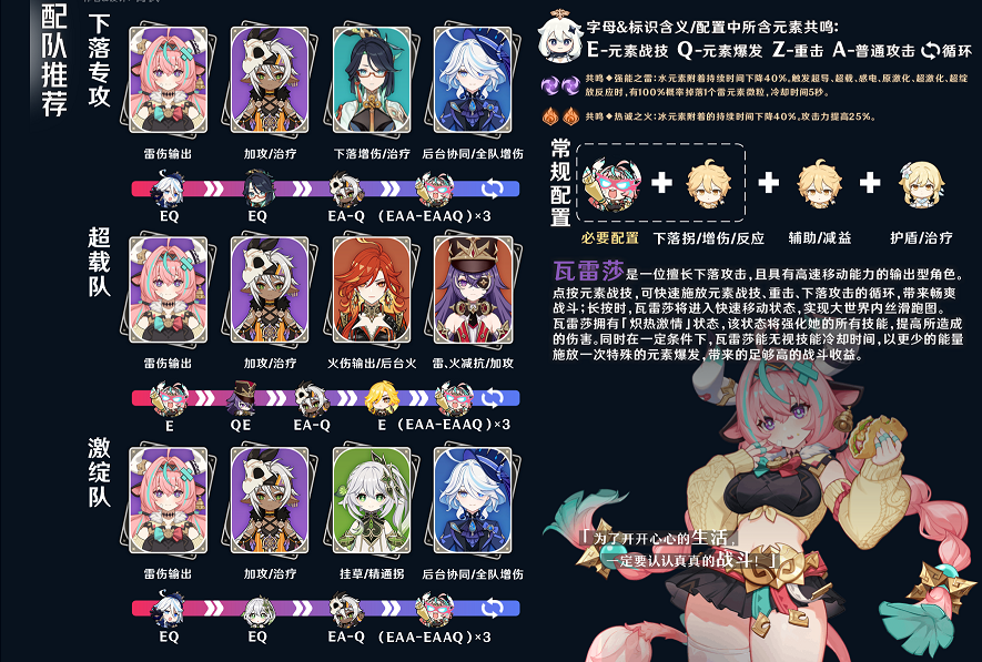 原神瓦雷莎关键命座与配对推荐,她是悠悠哉哉,无比松弛的「沃陆之邦」战士兼果园主,喜欢充满力量的英雄,还有巨量美食!
