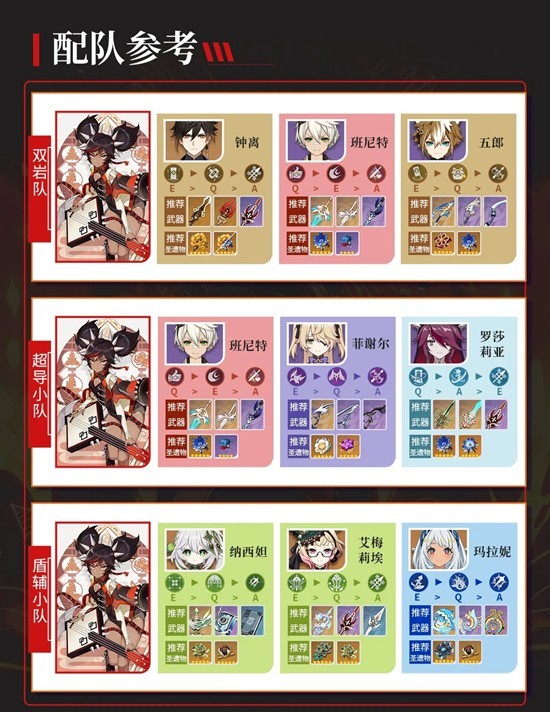 ①双岩队:辛焱+钟离+班尼特+五郎