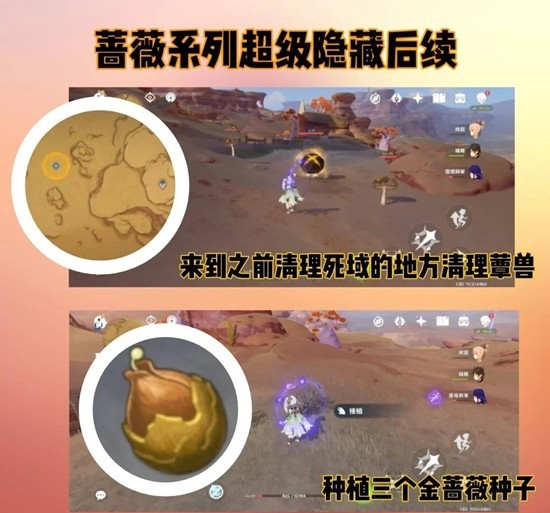 •来到之前清理死域的地方,种植金蔷薇种子「註:必须种植三个」,等到现实第二天回来这里。