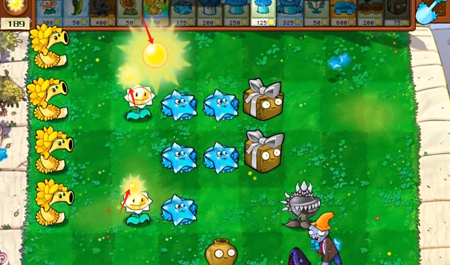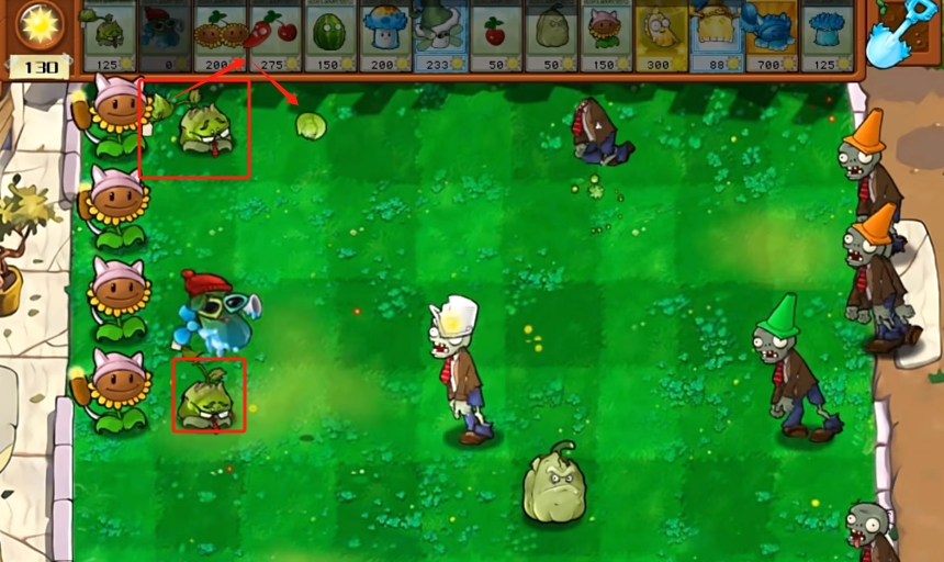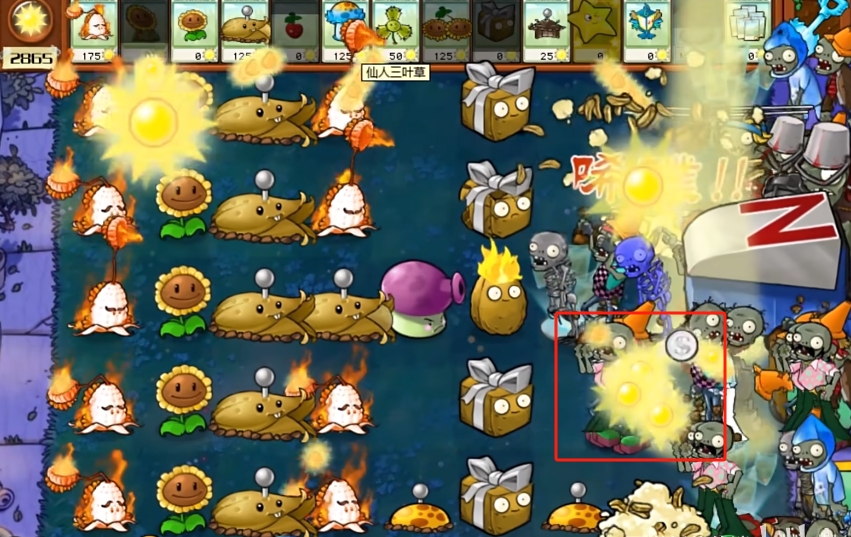 5、所以伪装向日葵可以当成一个血包来使用,50的价格,死亡后爆出二百多阳光,稳赚不亏。