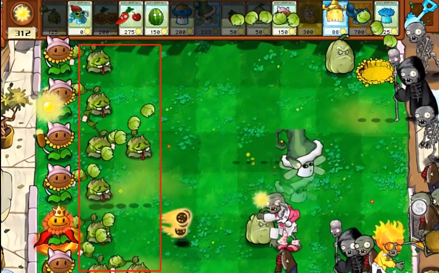 4、内卷投手的攻击距离很远,可以放在后排来攻击僵尸。