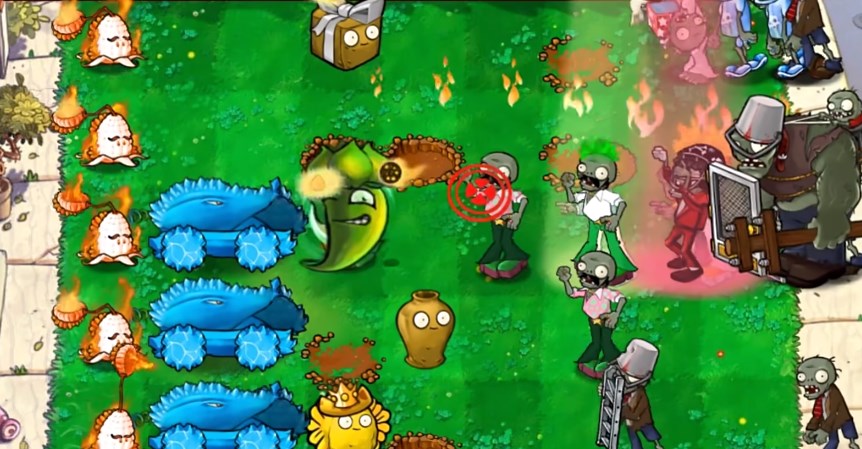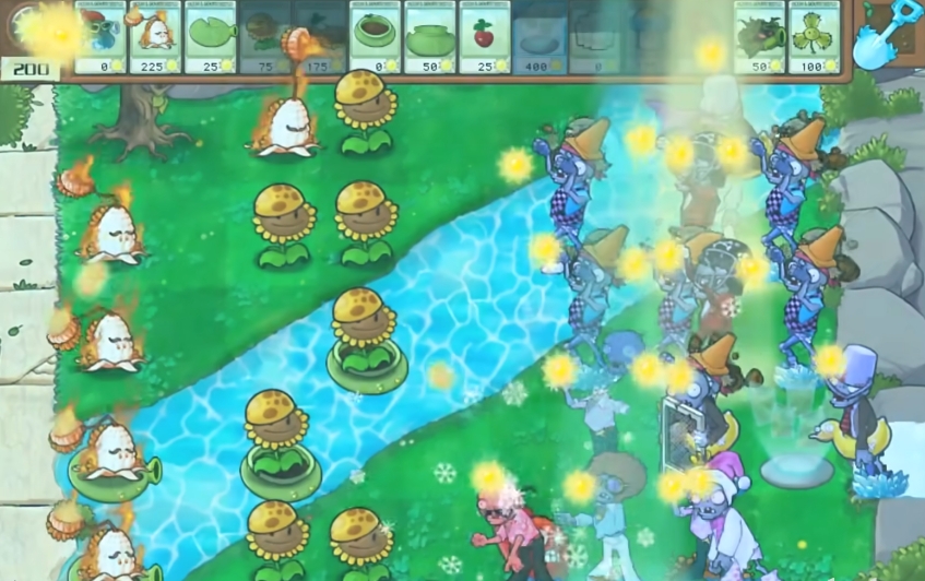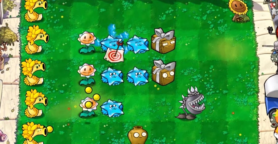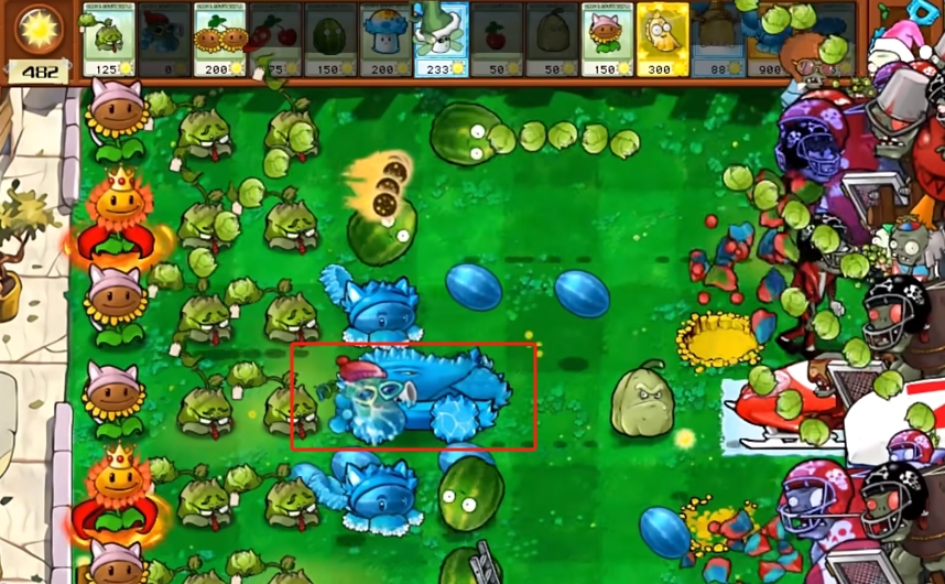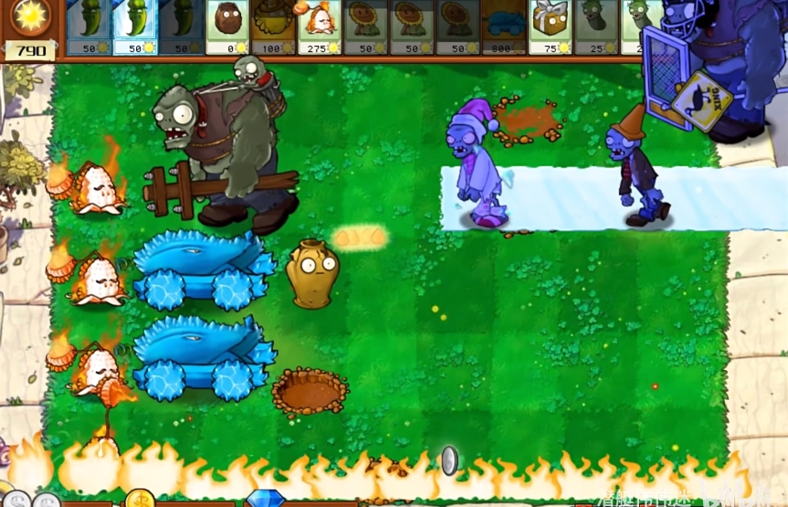 4、制冰豆放在植物后,会向僵尸方面发射子弹,然后冰冻住被子弹击中的僵尸。