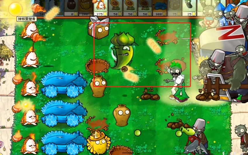 4、辣椒重塑者的位置适合放在僵尸多的地方,利用率高,直接消灭一列的僵尸。