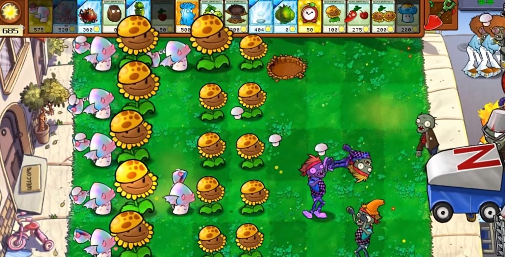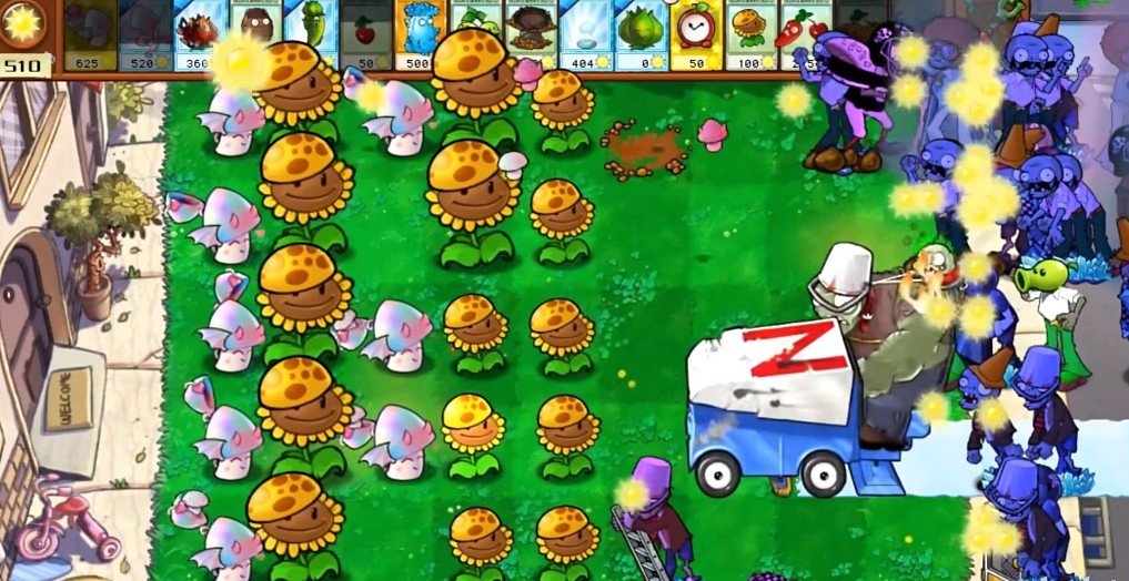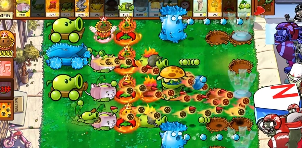 ①美味配方(被动):每25秒生产50阳光/75阳光/100阳光/125阳光/150阳光,每2秒发射8枚/10枚/12枚/14枚/16枚随机子弹