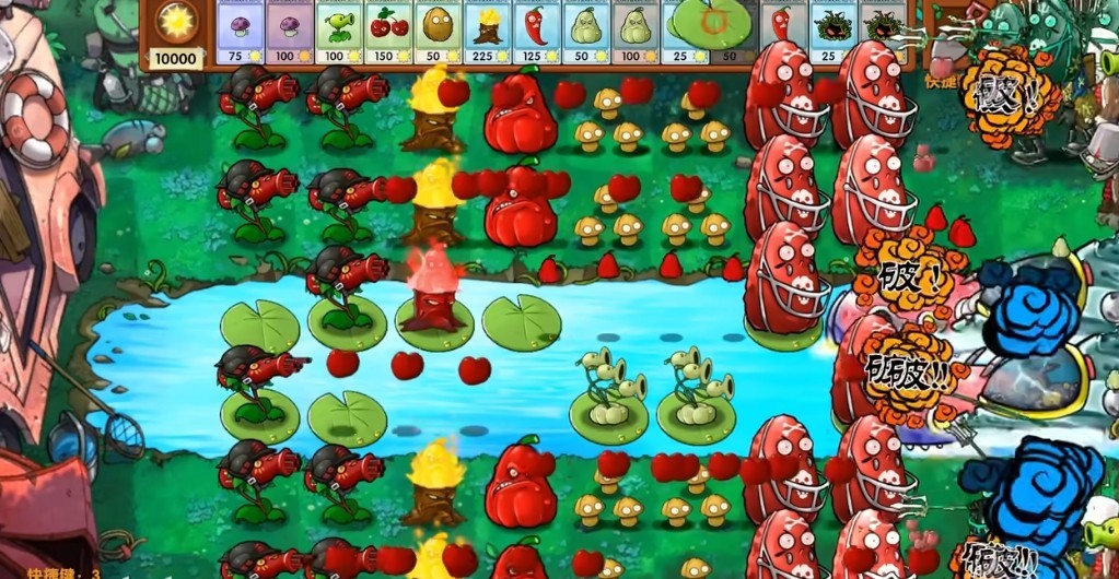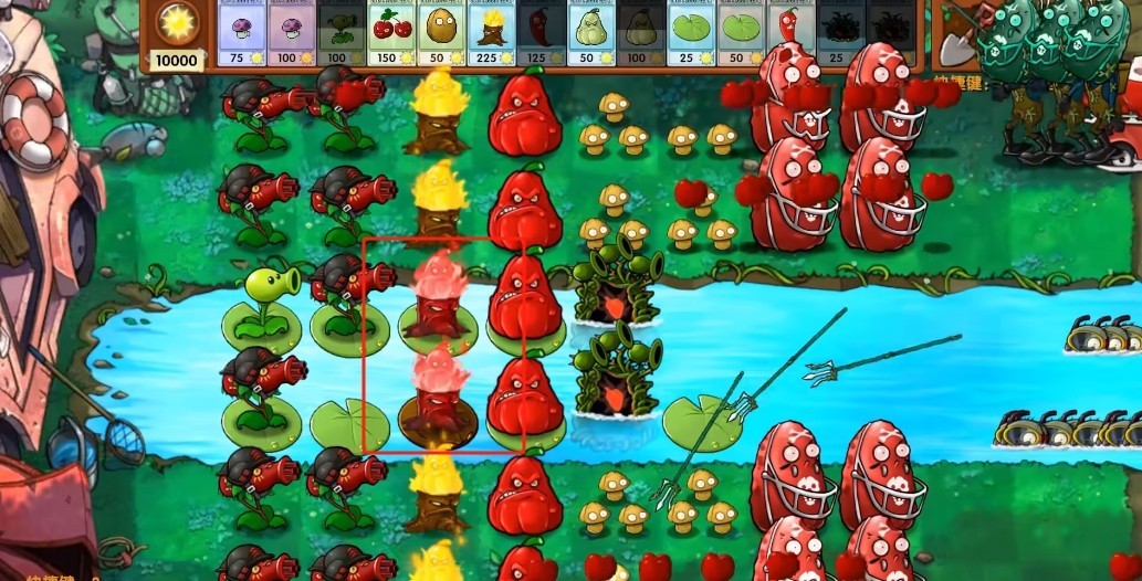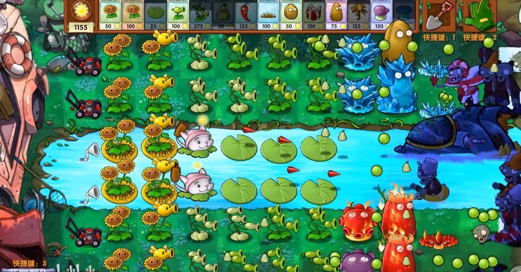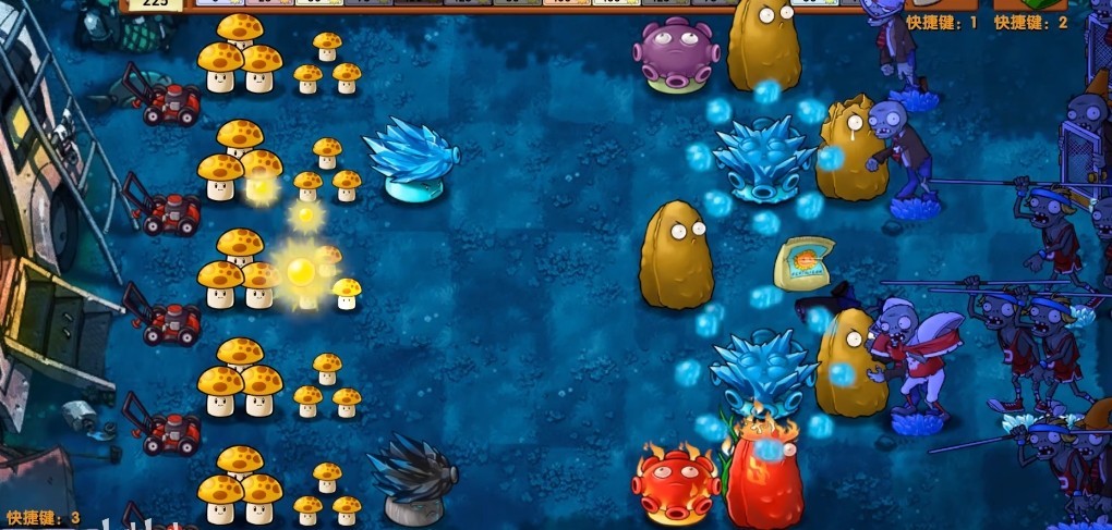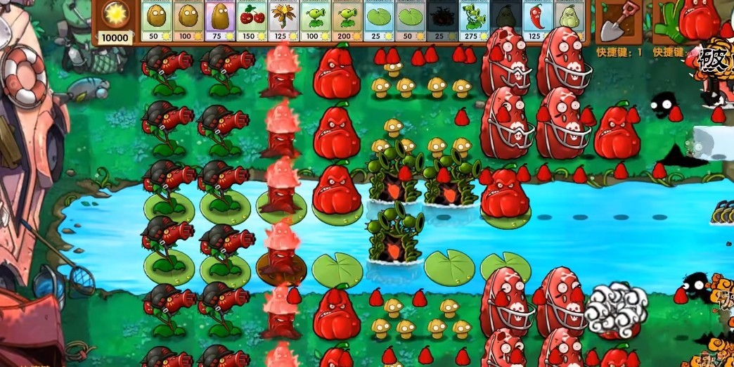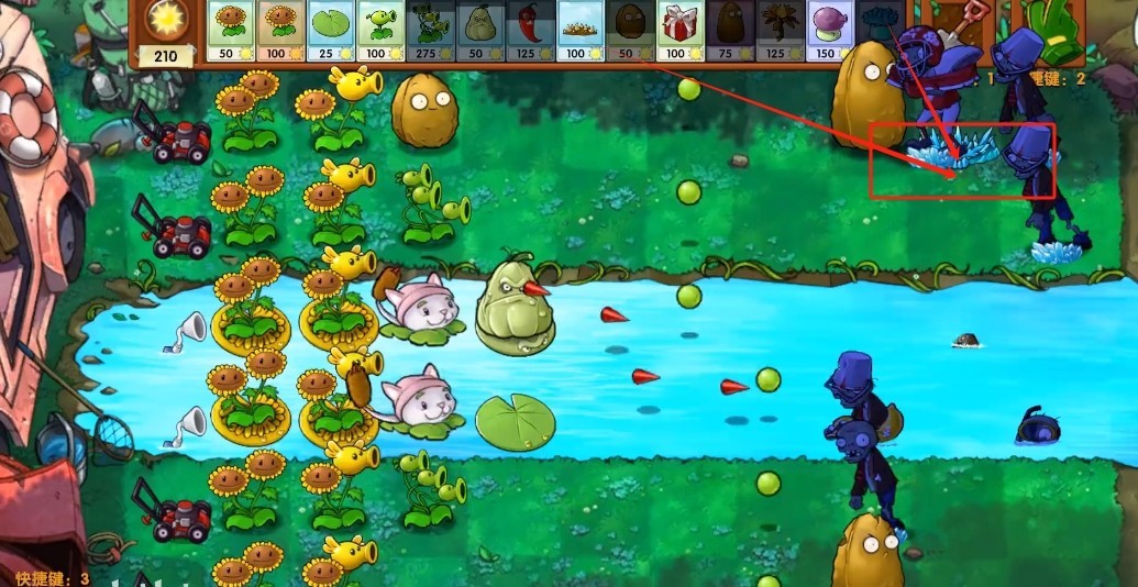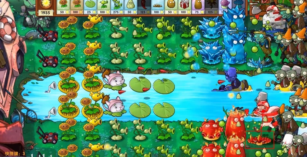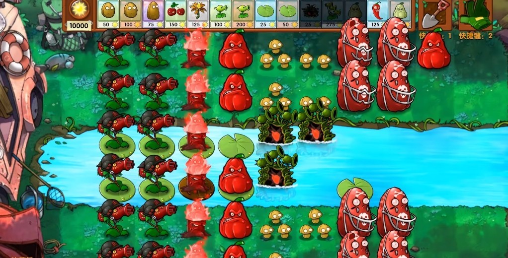 2、每点燃20个子弹召唤一个火爆窝瓜,如果在水里则召唤睡莲和火爆窝瓜。