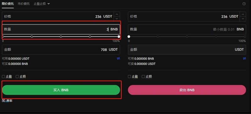 9.输入买入BNB数量,点击买入BNB就可以了