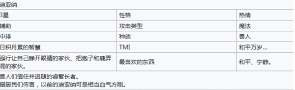 迪亚纳为三星辅助使徒,兽人种族,站位在中排。