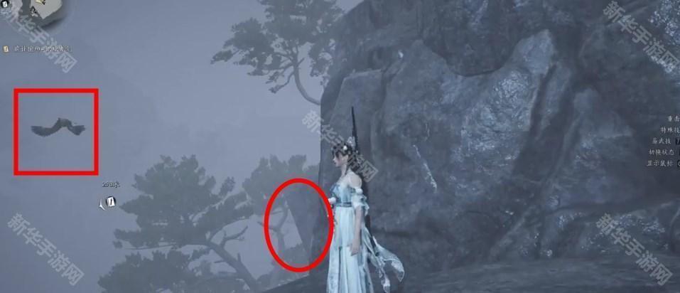 2、在这里我们可以发现一个很大的石头假山,奇术就在半山腰位置。