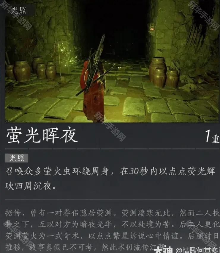 召唤众多萤火虫环绕周身,在30秒内以点点荧光辉映四周沉夜。