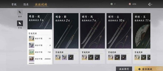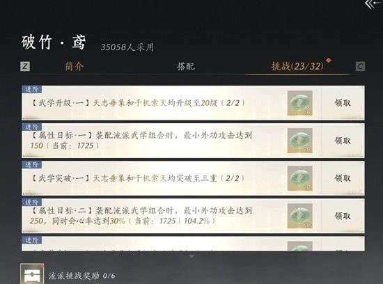 1.流派挑战速刷(需要解锁全部武学且本赛季没有重置过武学,且有两个武学为满级)