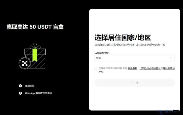 5、选择居住国家/地区,勾选服务条款、《风险与合规披露》及隐私法规与声明
