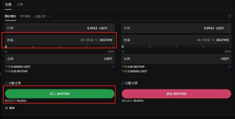 12、输入买入BIGTIME数量,点击买入BIGTIME就可以了;输入卖出BIGTIME数量,点击卖出BIGTIME就可以