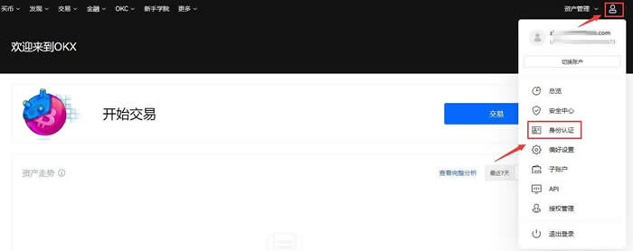 3.在页面右上角点击【个人中心】-【身份认证】,进入身份认证页面,按照页面提示完成LV.1基础认证、LV.2高级认证和LV.3视频认证。