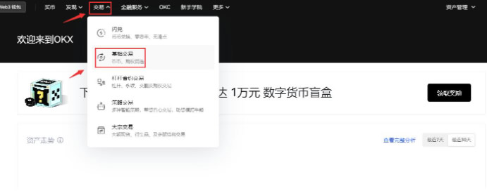 4.完成注册后,在首页点击“交易”--“基础交易”进入交易页面