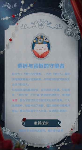以闪亮之名游戏里镜渊奇遇是3.7版本「绯魇烬梦」下的H5限时活动,核心是扮演心理医生玛丽探索镜渊回廊做选择触发结局,首次通关即可拿限定头像,以下是可以达成的五个结局分享。