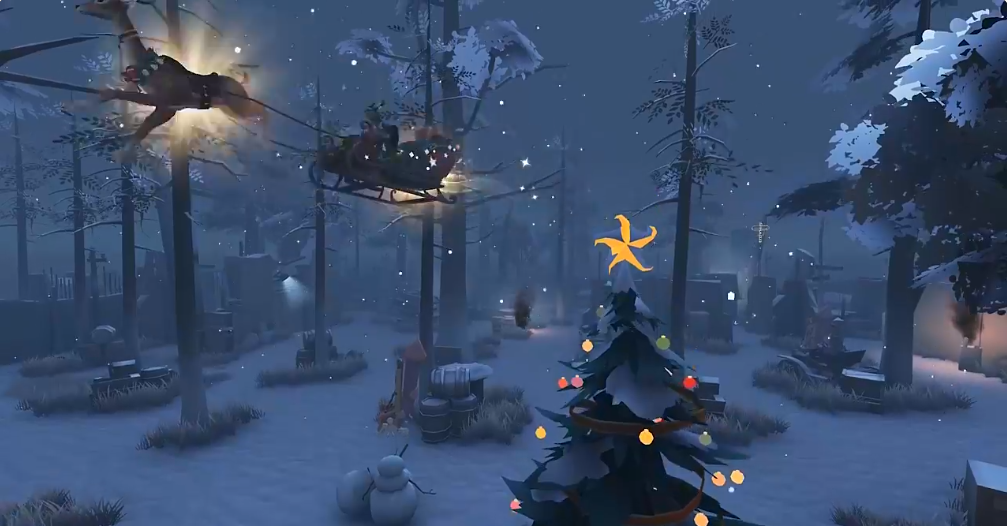 每局开始15秒后,将有特殊角色登场:从孽蜥、鹿头、厂长中随机选取一位,化身圣诞彩蛋使者,驾驶驯鹿雪橇车入场。该角色将依次飞越所有在场玩家位置,并投下可拾取的圣诞礼物。