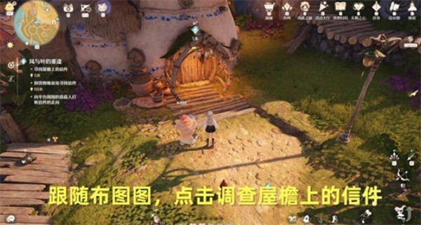 完成后进入下一段对话,风将信件吹走,需要寻找三个点位向菇菇人打听信件位置。