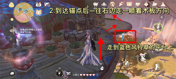 2、路线:锚点—向右边木板走—跳下一层—顺着这一层绕着往前走几步—锚点就在前方不远处