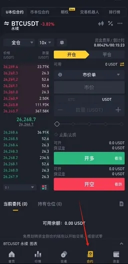 点击页面底部的“合约”按钮,进入合约交易界面。
