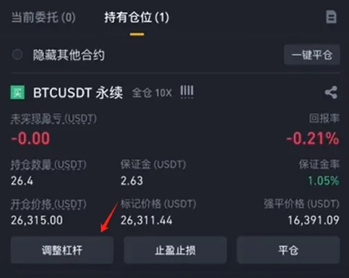 底部还有一个调整杠杆的选项。点击后,你可以在持有仓位的情况下调整你的杠杆比例。