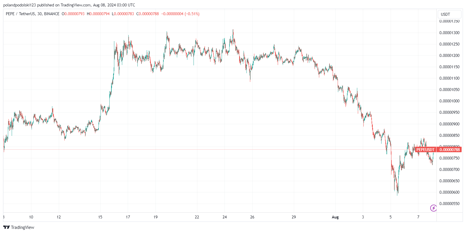 作为相对新兴的加密货币,Kaspa的市场流动性可能不如比特币或以太币等成熟的加密货币。一旦市场流动性不足,投资者可能会面临kas币价格短时间内大幅下挫的风险。比如在前段时间非常火爆的Pepe币,其在最近的虚拟货币流动性危机中价格就不断下探,从最高点的$0.000013一路跌到了不足$0.000008的水平。究竟Kaspa的人气能否延续还需持续观察。但相比实际用途不多的迷因币Pepe,Kaspa网络有着明显的优势,价格上应该比Pepe币有更强的支撑。