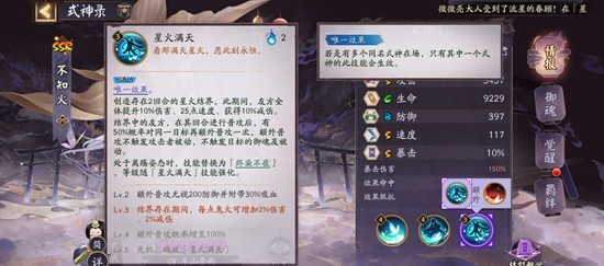三技能:形成一个2回合的结界,结界内的友方全体,伤害提升,速度提升,减伤,有方在自己回合普工的时候,可以额外在普工一次(无视目标被动、御魂、攻击者的被动)