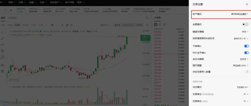 8、如果想要进行合约交易,需要将账户模式开通并设置为单币种保证金模式或跨币种保证金模式。