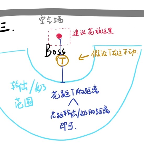 开局什么样子忘记了,但是会一直提示全体沉默,虽然没搞懂为啥有时候沉默了有时候没沉默,但是沉默之后就是放花了,花放在距离T很近但是不影响t的位置,比如说靠近背后空气墙的位置。就像万劫老三的花要放在一起一样,这个同理。