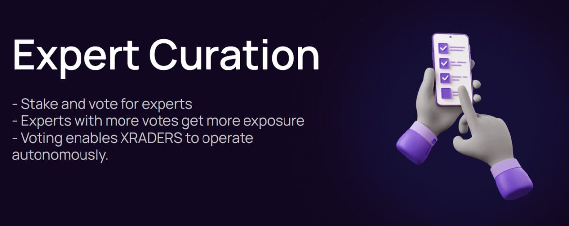 XRADERS 通过在区块链上进行共识化策展,允许资深交易员与投资者们分享现有见解,并帮助投资者们洞察市场和作出决策。