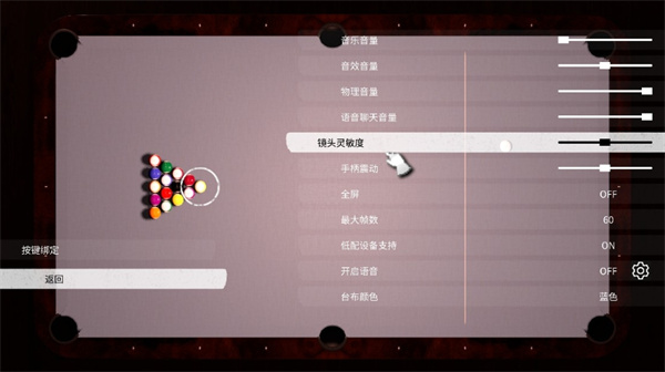 如果在击球时经常出现打厚或打薄的情况,可以尝试调整镜头灵敏度: