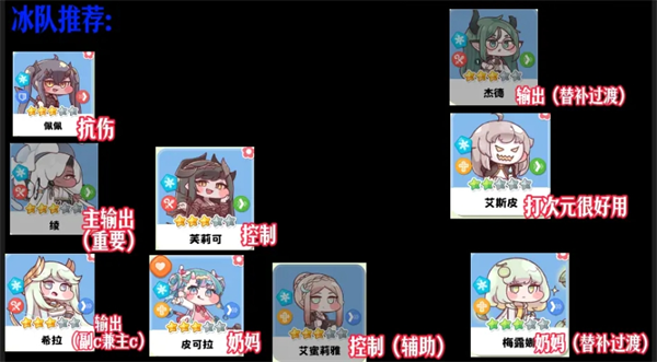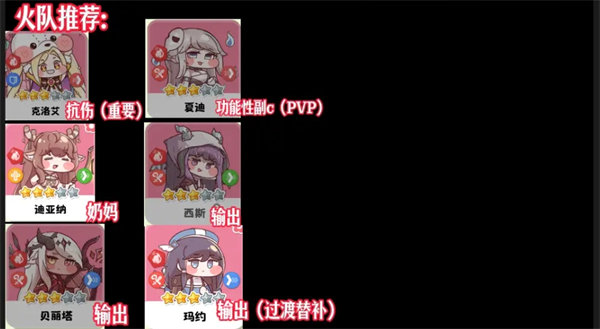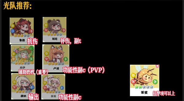 嘟嘟脸恶作剧游戏中以纯色队为最优配队方向,同色角色上阵可获得血量与伤害双重加成,游戏有暗、光、冰、火、草五个纯色队伍,以下是纯色队的搭配推荐供玩家参考,玩家可以根据自身情况来调整。