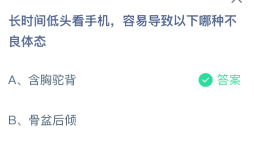 以上就是长时间低头看手机,容易导致以下哪种不良体态,支付宝蚂蚁庄园2025年12月20答案最新,更多精彩内容,请点击关注本站手游网更新!