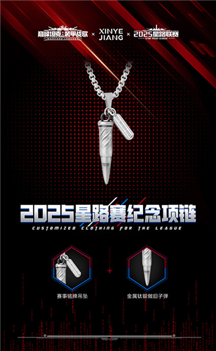 在即将举办的线下年度总决赛,晋级四强的每位选手都会获得Star Road星路联赛与XINYE JIANG合作联名的全新官方赛事战袍及本赛季特别的纪念配饰。XINYE JIANG品牌主打“反叛与优雅”,在与《巅峰坦克》燃战不止的暴力美学激情碰撞下,本次的周边设计亦得到了全新升级。