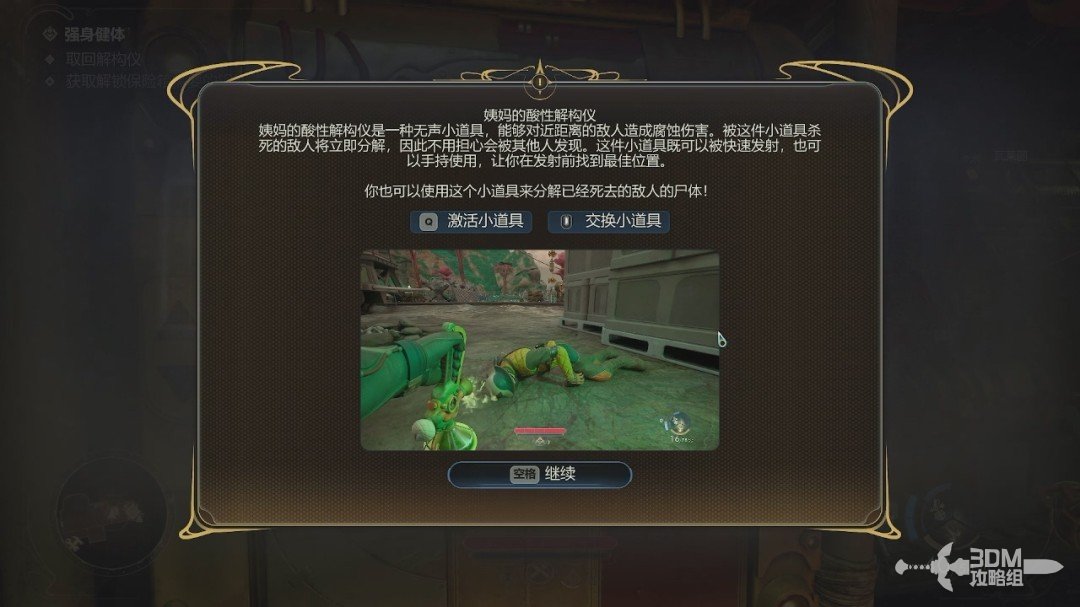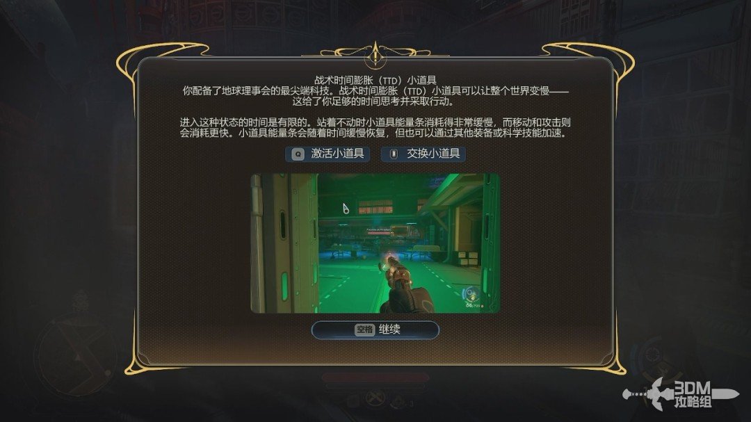 初期的对话选项不是很重要,可以看自己的游戏风格选。在对话的时候我们获得一个道具“战术时间膨胀小道具”,等会会告诉我们具体用法。