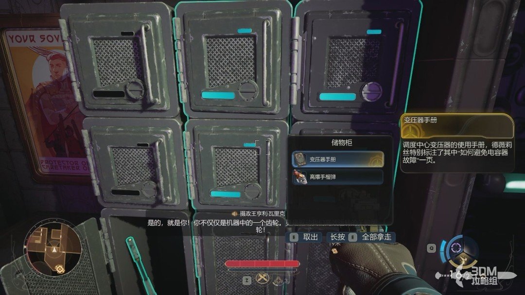 跟着目标点继续走,来到室内。我们先到旁边的储物柜里面获得“变压器手册”。