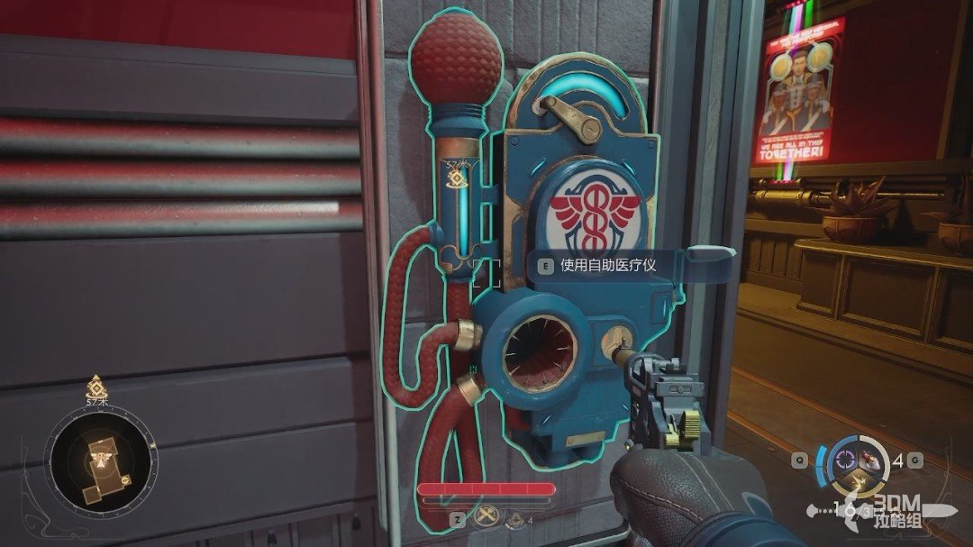 拿到后继续跟着目标点走。如果状态不好的话可以在门口的自助医疗仪处治疗一下。