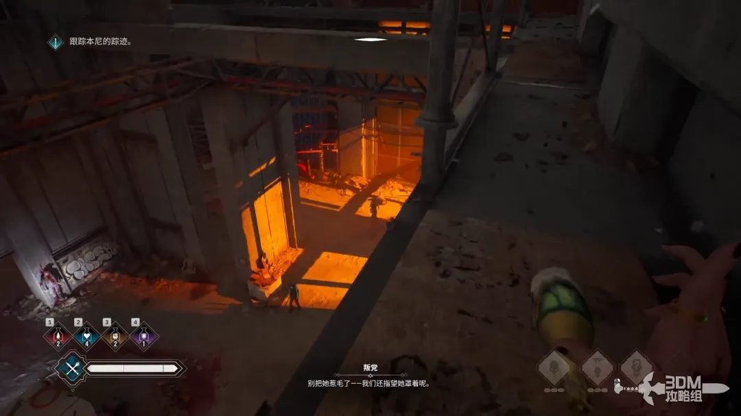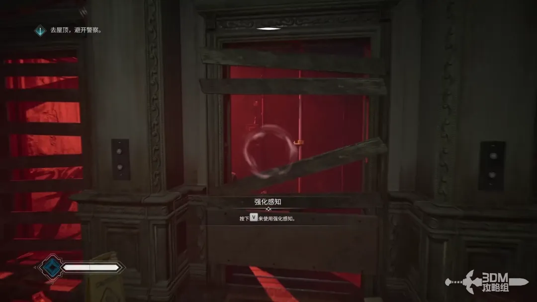 剧情结束后继续往前走,按V开启强化感知能力。
