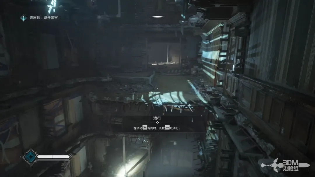 在向前移动时按住空格键滑行过较大的裂隙。