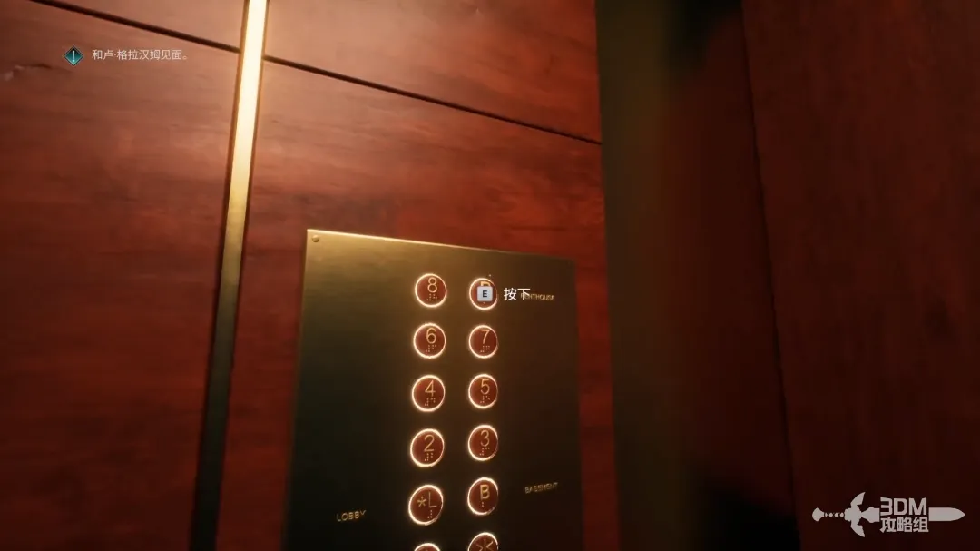 进入酒店,大厅尽头使用电梯到顶楼,在电梯里进入回忆。