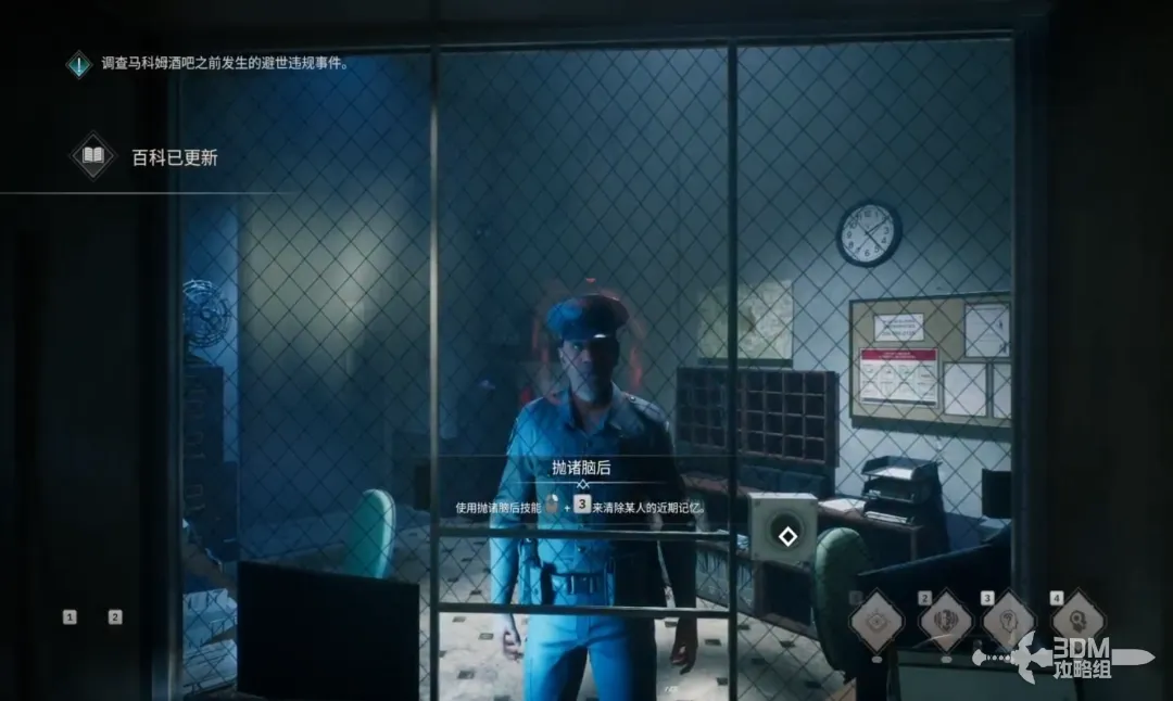 再前台处可以和惠勒警官对话熟悉一下技能的作用。