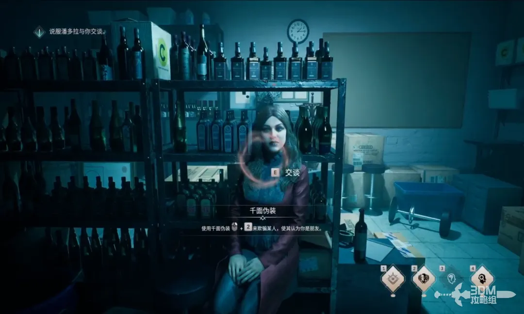 去酒吧的后台处找到潘多拉,询问问题,然后再使用2技能千面伪装,使用技能后,即使选错了答案也不会有影响,所以无所谓,这里两个都选择第三个选项。(欢迎夜晚的女儿、我是你的梦中情人)