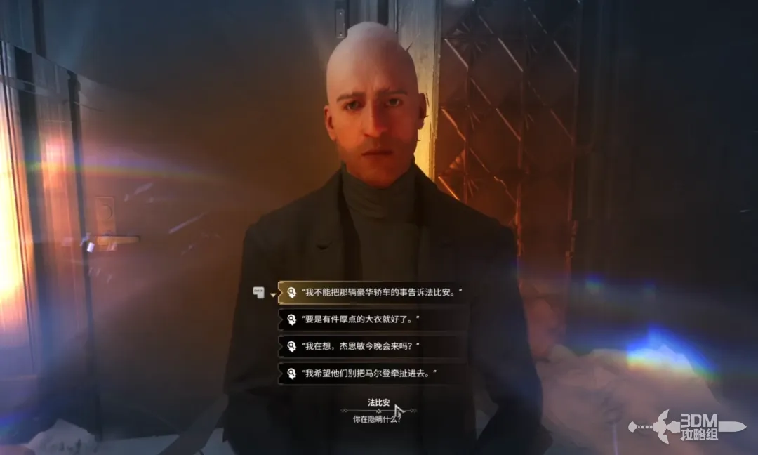 对话完弗莱彻出门和保镖对话,使用4技能,选择第一个选项。