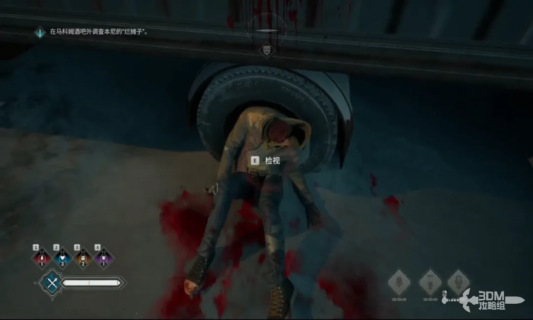对话结束后,从酒吧后门出去,调查货车旁边的遗体,处理本尼的烂摊子。