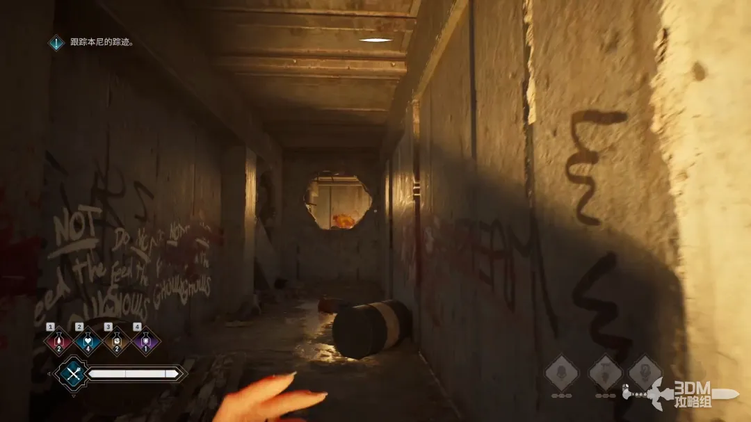 和尸体互动完成之后,再按V强化感知能力,追踪血液的气味。
