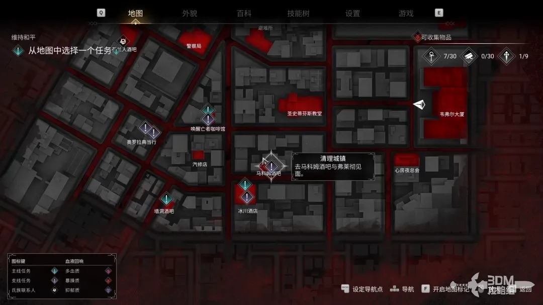 出门前先去楼下收容所的地方找到补充技能的NPC,吸完血之后去马科姆酒吧。