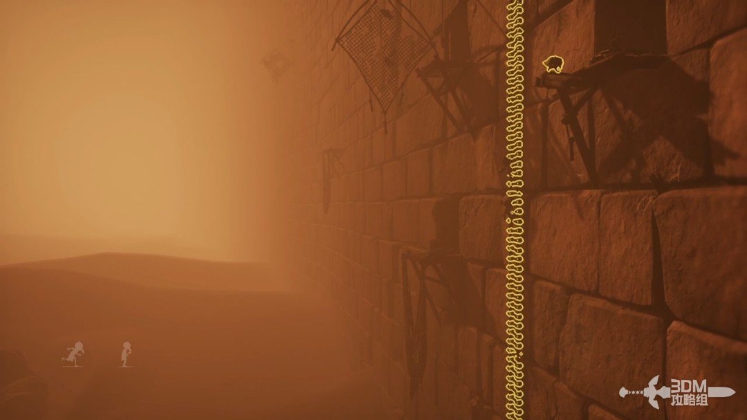 往右走来到沙漠,沙漠上能看到乌鸦,这个乌鸦是第一章里的收集品(成就:需要射击11只乌鸦)。