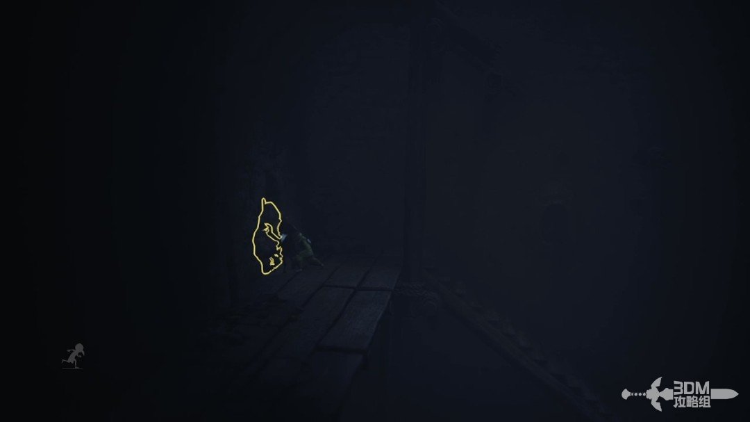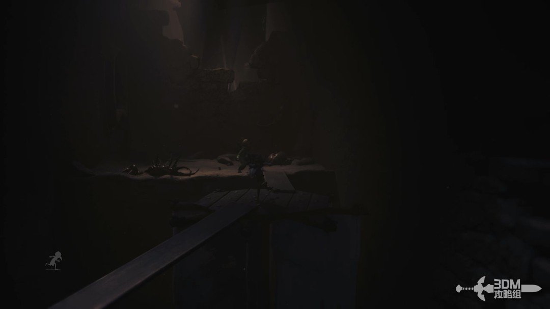 接着一直往右边走,这里需要按CTRL键蹲下来走过去,画面很黑,有点看不清。