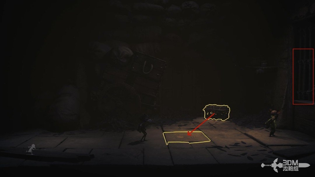 接着来右边把堵门的箱子拉出来,从洞口出去。